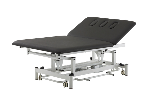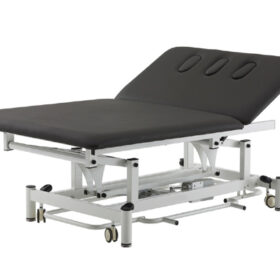 Camilla Bobath de 2 secciones con ajuste eléctrico de la altura mediante control perimetral y superficie extra-ancha de 120cm. Diseñada para rehabilitación y tratamiento de personas con problemas neuromotores. La amplia superficie de la camilla ofrece mucho espacio tanto para el paciente como para el terapeuta. Equipada con 3 orificios faciales con tapón para garantizar mayor flexibilidad durante el tratamiento.