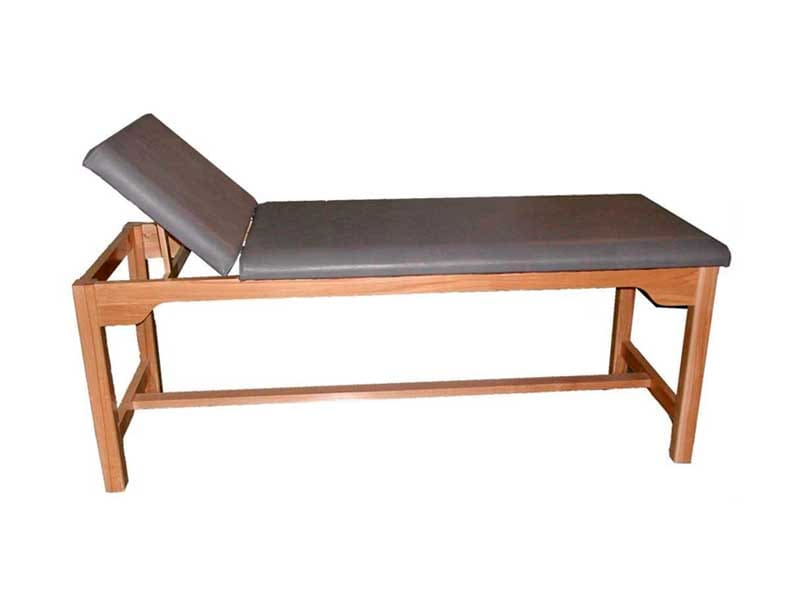 Camilla de madera para masaje y tratamiento, construida Ãntegramente con madera maciza de haya tapizada en similpiel gris.