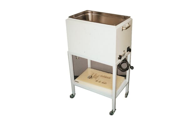 Carro para acoplar el baño de parafina, facilitando la aplicación en extremidades superiores y su desplazamiento con seguridad.