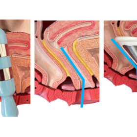 Los electrodos quedan colocados en áreas anatómicas estratégicas pubovaginal y elevador del ano), lo que permite la estimulación y/o el registro EMG de estos músculos de manera selectiva.
