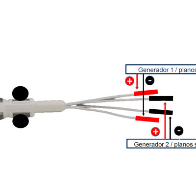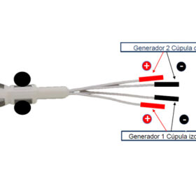 Los 2 cables negros, más largos, corresponden a los electrodos derecho e izquierdo del cilindro no deformable que se coloca sobre los planos superficiales.