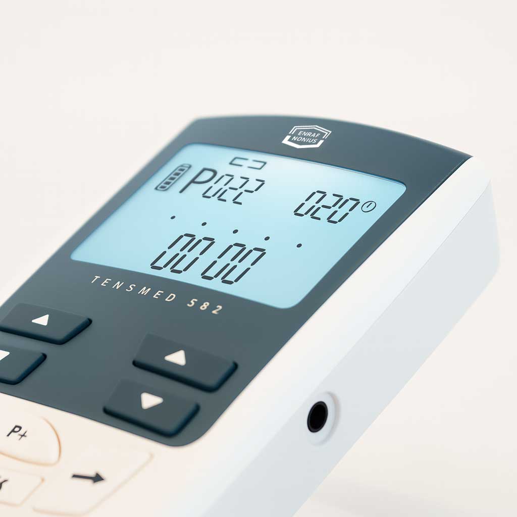 El modelo TENSMED S82 es un electroestimulador de dos canales equipado con una pantalla LCD claramente legible.